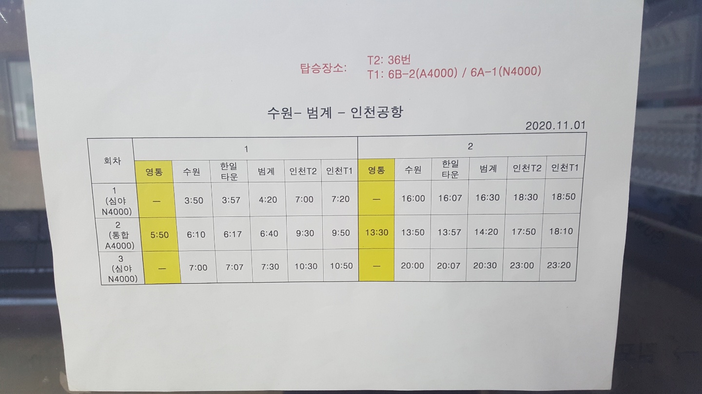 영통에서 인천공항 가는 시간표도 확인할 수 있는데 오전 5시 50분과 낮 13시 30분이라고 합니다.