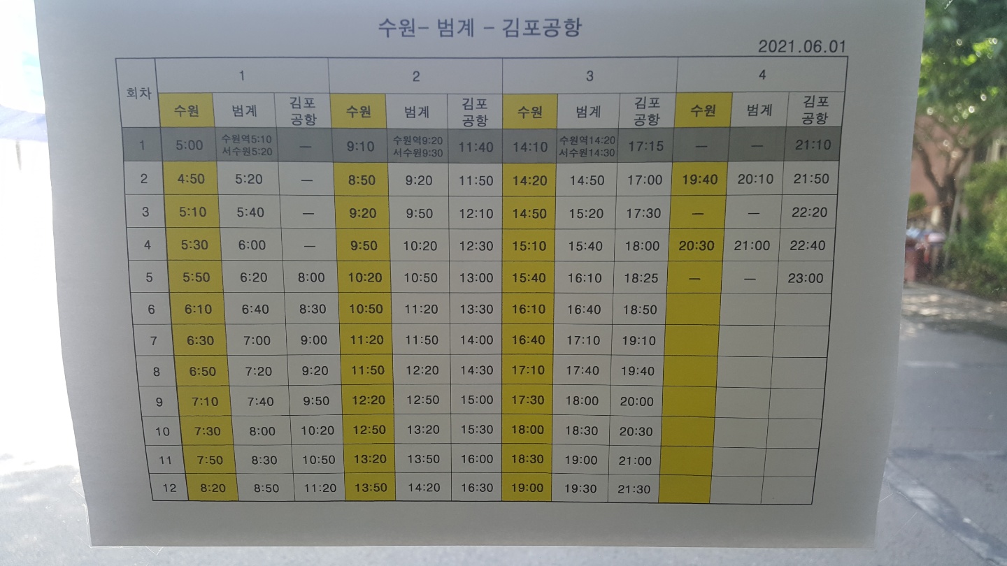 | 수원 김포공항 인천공항 리무진버스 시간표 21년 9월 (0) | 2021.09.02 |