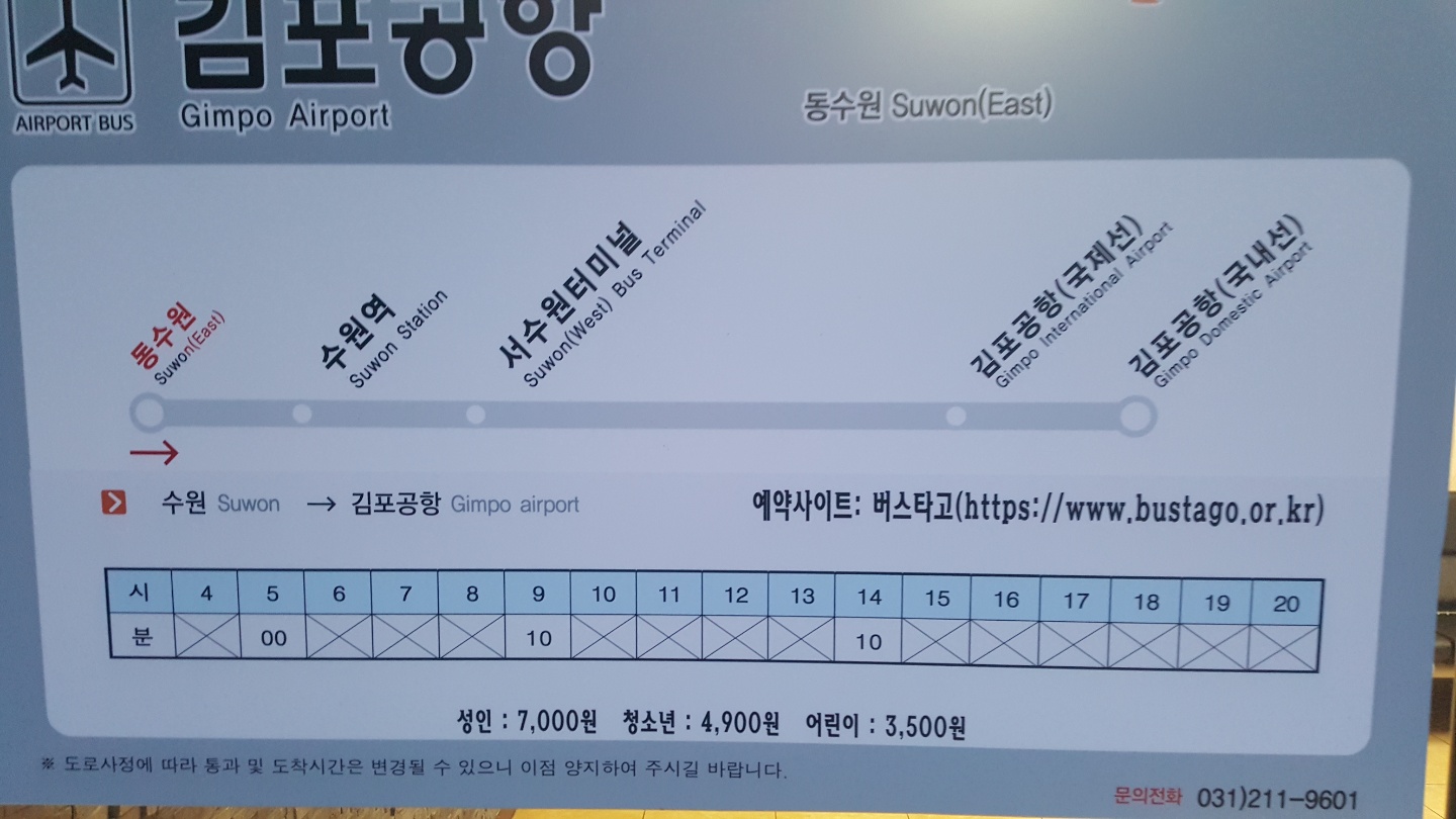 그렇게 되면 수원역에서 김포공항 가는 리무진 시간표는 오전 5시 10분 , 오전 9시 20분 , 오후 2시 20분이라고 합니다.